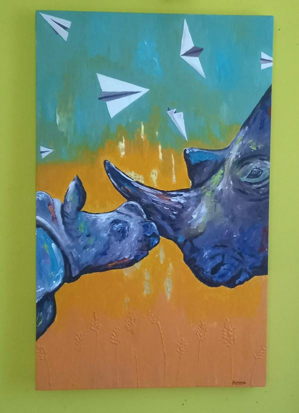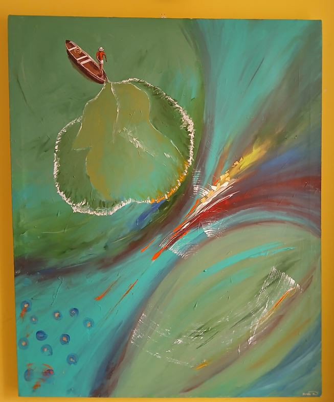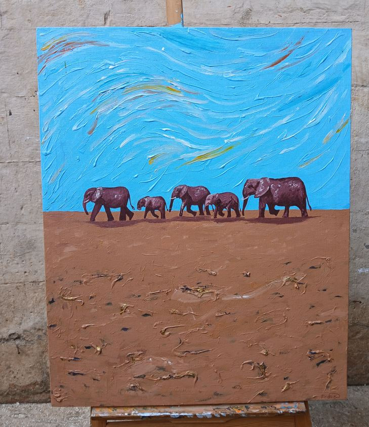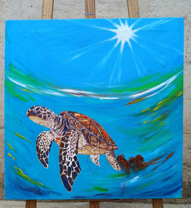 40cm by 40cm each, Acrylics on canvas, found objects Price is for each, available in different colors