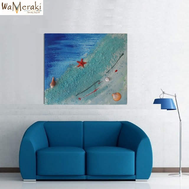120cm by 60cm (split art 60cm by 60cm each), Acrylics on canvas, with real shells